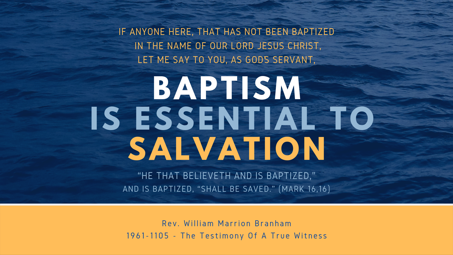 If anyone here, that has not been baptized in the Name of our Lord Jesus Christ, let me say to you, as God’s servant, baptism is essential to salvation. “He that believeth and is baptized,” and is baptized, “shall be saved.”