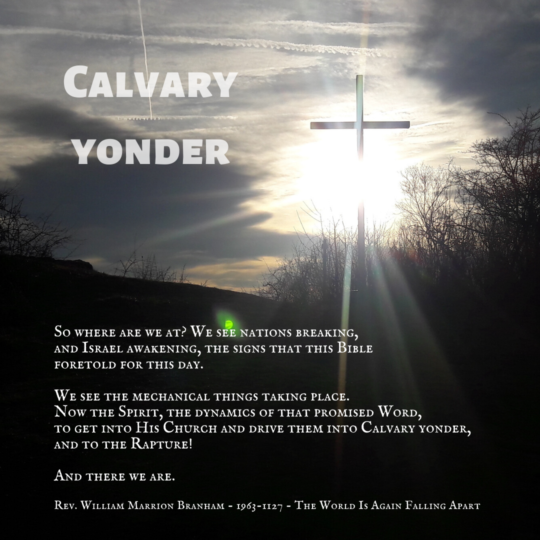 So where are we at? We see nations breaking, and Israel awakening, the signs that this Bible foretold for this day. We see the mechanical things taking place. Now the Spirit, the dynamics of that promised Word, to get into His Church and drive them into Calvary yonder, and to the Rapture! And there we are.