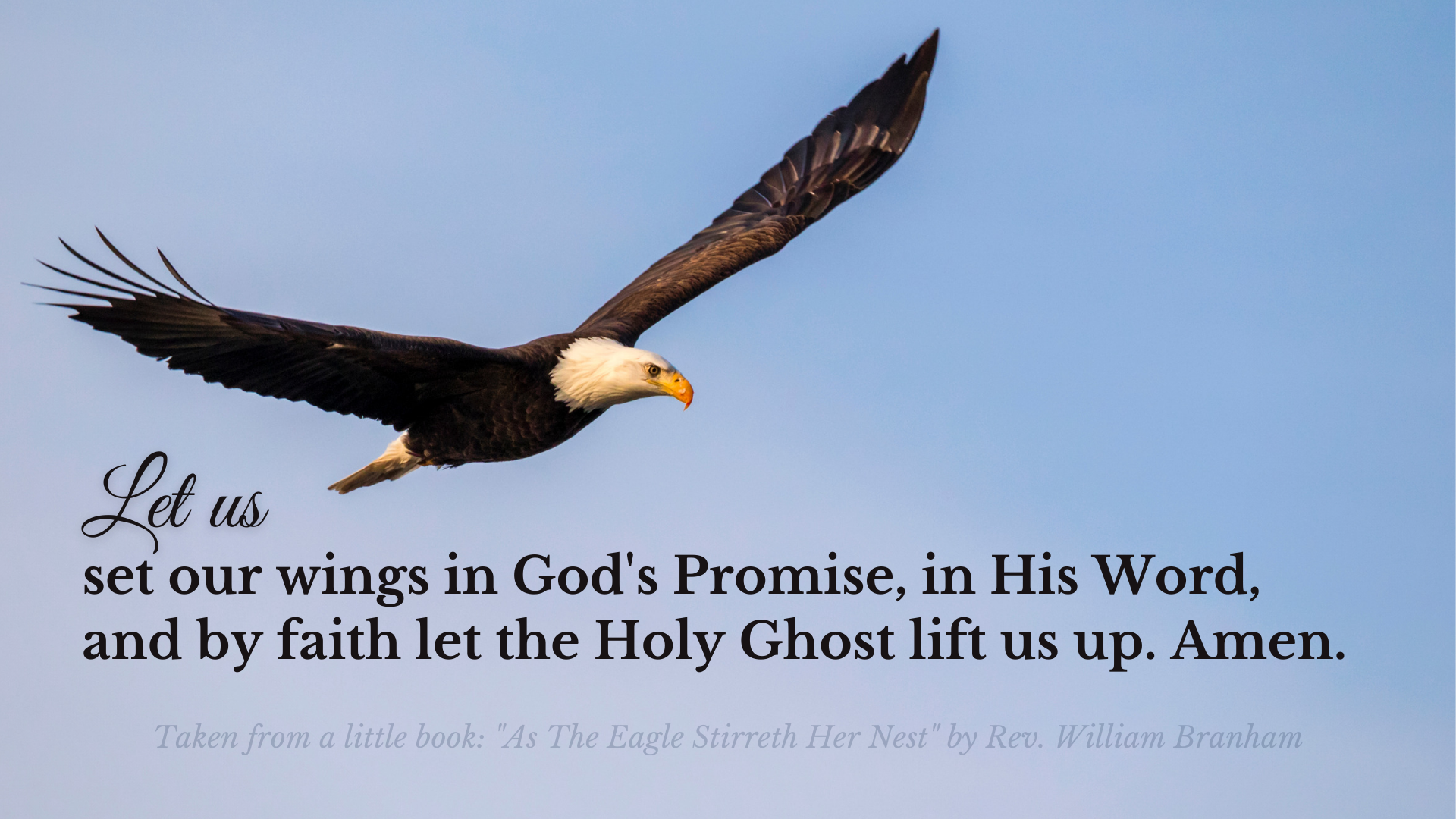 ...set your wings in the promise of God, and by faith the Holy Ghost lifted you up on beyond denominational barriers.