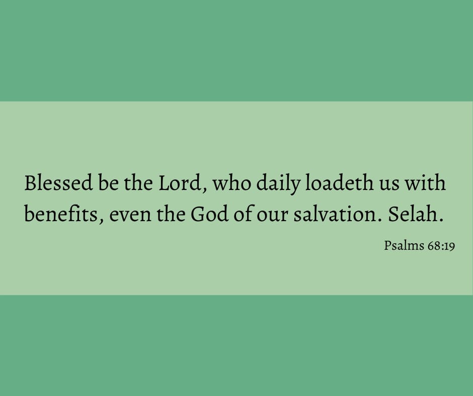 Blessed be the Lord, who daily loadeth us with benefits, even the God of our salvation. Selah.
