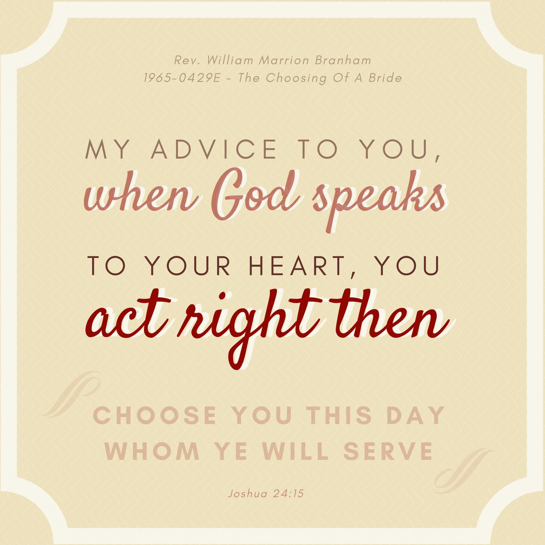 My advice to you, when God speaks to your heart, you act right then.